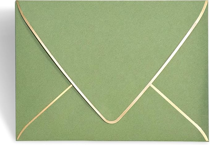 A7 sage green Envelopes 5 x 7 With Gold Border,- 25 Pack,For 5x7 Cards| Quick Self Seal| for Weddings, Invitations, Photos, Graduation, Baby Shower| Thick Luxury paper|5.25 x 7.25 Inches
