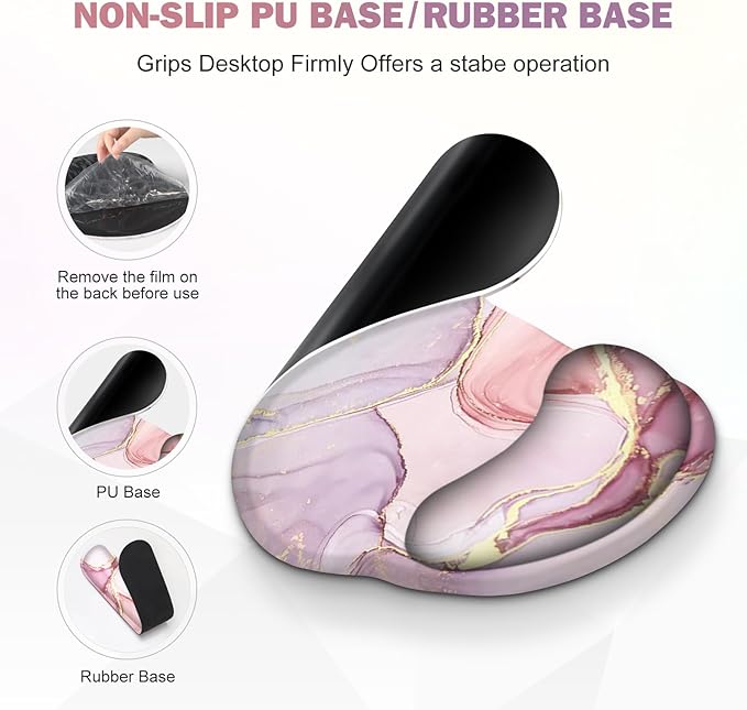 ToLuLu Desk Mat, XXL Large Mouse Pad Wrist Support Set,4 in1 Gaming Mousepad Desk Pad+ Ergonomic Mouse Pad with Wrist Rest + Keyboard Wrist Rest+Coaster for Home Office Computer, Pink Glitter Marble