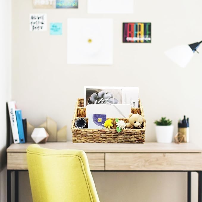Desk Organizer – Countertop Mail Organizer, Magazine Holder, Boho Decor Water Hyacinth Desk Mail Holder for Home Office, Farmhouse, 12.6" L x 6.7" W x 6.3" H
