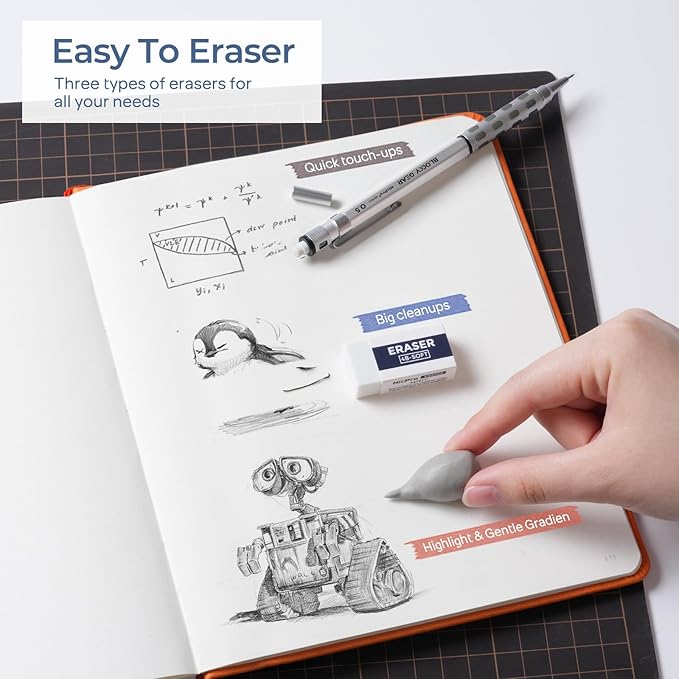 - 0.5mm HB & 2B Lead: Extra durable lead is stronger than standard lead, produce clear and dark line & marks,works with mechanical pencil with no need to sharpen.Easily correct mistakes with a replaceable eraser or 4B eraser. Perfect supplies for writing,drafting, drawing & template work