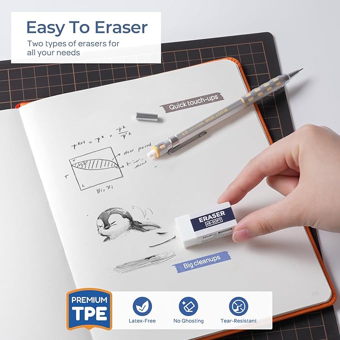 - 0.5mm HB Lead: Extra durable lead is stronger than standard lead, produce clear and dark line & marks,works with mechanical pencil with no need to sharpen.Easily correct mistakes with a replaceable eraser or 4B eraser. Perfect supplies for writing,drafting, drawing & template work