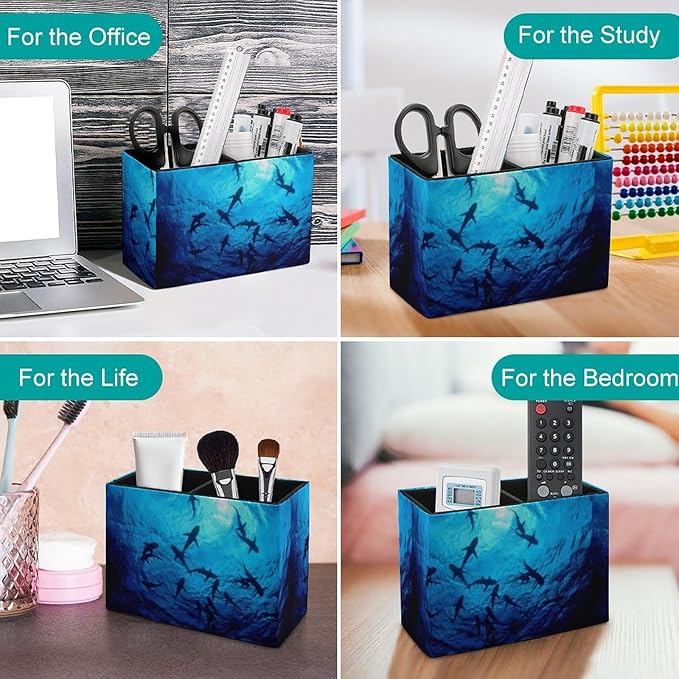 Pen Holder, Pencil Holder for Desk Organizer, Sea Ocean Animal Sharks PU Leather Pencil Cups Desktop Stationery Storage Makeup Brush Holder Pen Organizer for Office Home