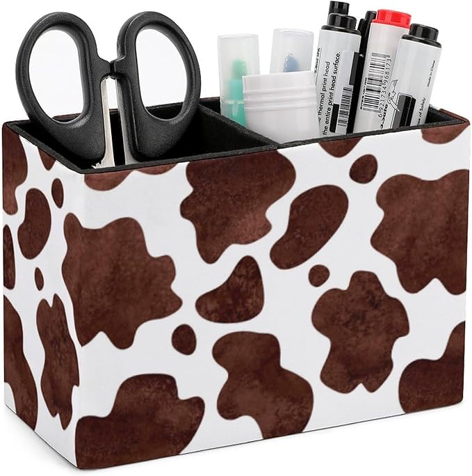 Pen Holder, Pencil Holder for Desk Organizer, Animal Print Cow Skin PU Leather Pencil Cups Desktop Stationery Storage Makeup Brush Holder Pen Organizer for Office Home