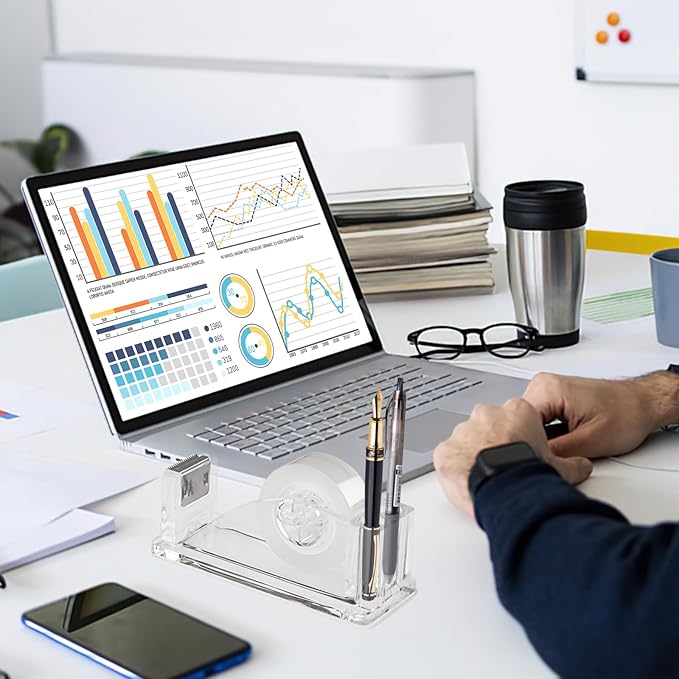 - Non-Slip: Office transparent acrylic tape dispenser are weight-increased, each weighing 5.47 oz. Also, non-stick adhesive to the bottom of the dispenser to improve the anti-slip performance without damaging your desktop
