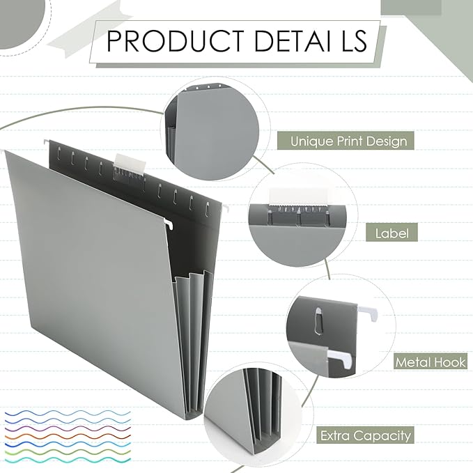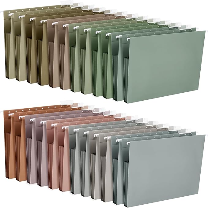 - Cute Colorful Style: the color scheme is soft and muted tones of taupes, warm grays, creams with accents of chartreuse and soft teals; Organize different types of files by these letter size hanging file folders for quick and easy identification