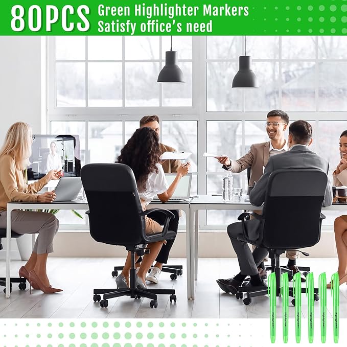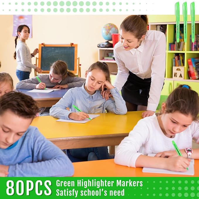 Fulmoon 80 Pieces Highlighters, Chisel Tip Bright Colors Quick Drying Markers for Adults Kids Highlighting in the Home School Office (Green)