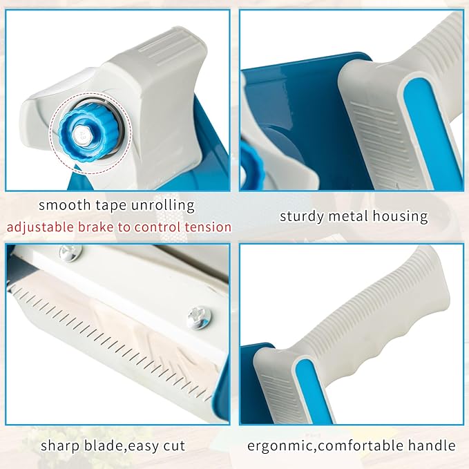 - Generous Packaging: each pack comes with 4 pieces of packaging tape dispensers, which means you can have a spare on hand; This ensures that you can keep working without interruption, even if one of them breaks accidentally; At the same time you can put them in different places, convenient for you to apply