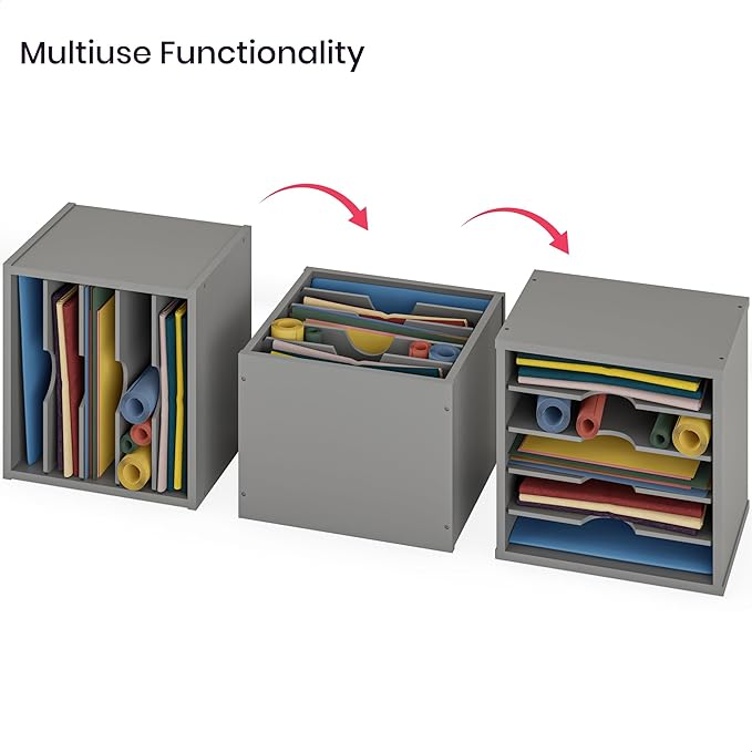 - MULTI-FUNCTIONAL: This classroom paper organizer is stackable with 3-way functional layout as needed: horizontal for standard documents, vertical for books or upright as a tub file bin