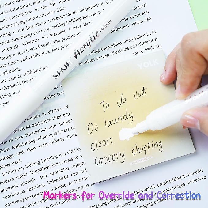 - Extra Fine & Medium Tips for Every Detail: Switching between fine outlines and bold fills with our 0.7mm extra-fine and 2-3mm medium tips. Whether you're sketching delicate patterns on your scrapbook or adding chunky strokes to a DIY home decor project, Or for correcting, covering writing errors on paper and rewriting, our markers have got you covered.