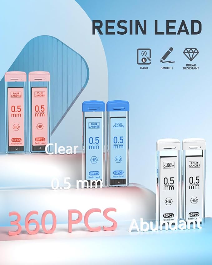 - Resin Lead Advantages: Resin increases strength for less breakage, facilitates smooth and fatigue-free writing, ensures uniform lines and darkness, and reduces debris for a cleaner workspace