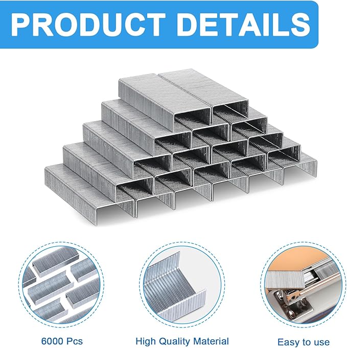 - Metal Heavy Stapler: This office stapler comes with 6 packs of metal stapler, totaling 6000 pieces staples, allowing you to start using it immediately without the need for additional purchases, provides you with greater convenience and value.