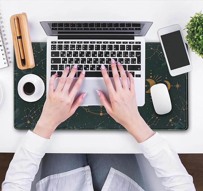 - Dark green forest mousepad cute aesthetic desk pad gold moon phases large deskmat mouse pad extended deskmat/playmat xxl size 31.5x15.75 in (80x40 cm), Thicknesses 3mm. These extra large mouse pads are the perfect gift for gamers. The Best Gamer Gift.