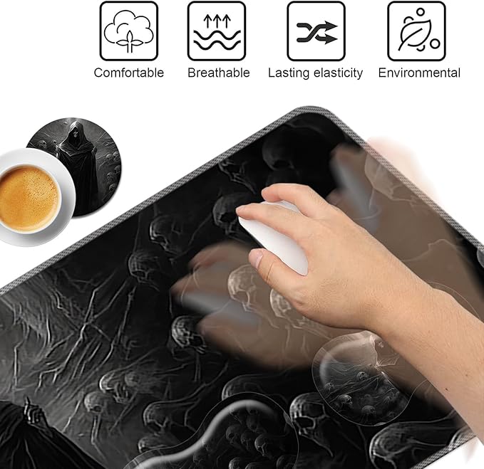 Keyboard Mouse Pad Set,Large Mouse Pad+Keyboard Wrist Rest+Wrist Support+Coaster,31.5x11.8in Extended Desk Mat for Computer Laptop Office Home-Spectre