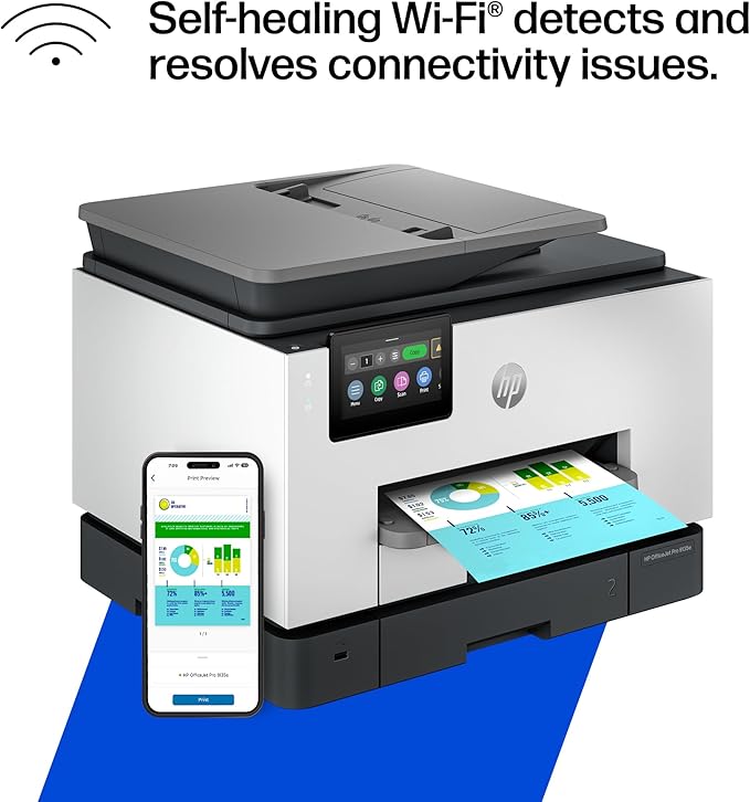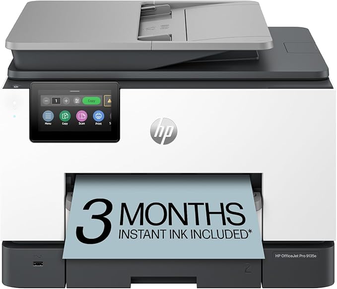 HP OfficeJet Pro 9135e Wireless All-in-One Color Inkjet Printer, Print, scan, copy, fax, ADF, Duplex printing best-for-office, 3 month Instant Ink trial included, AI-enabled (404M0A)