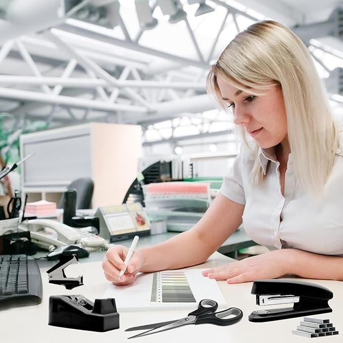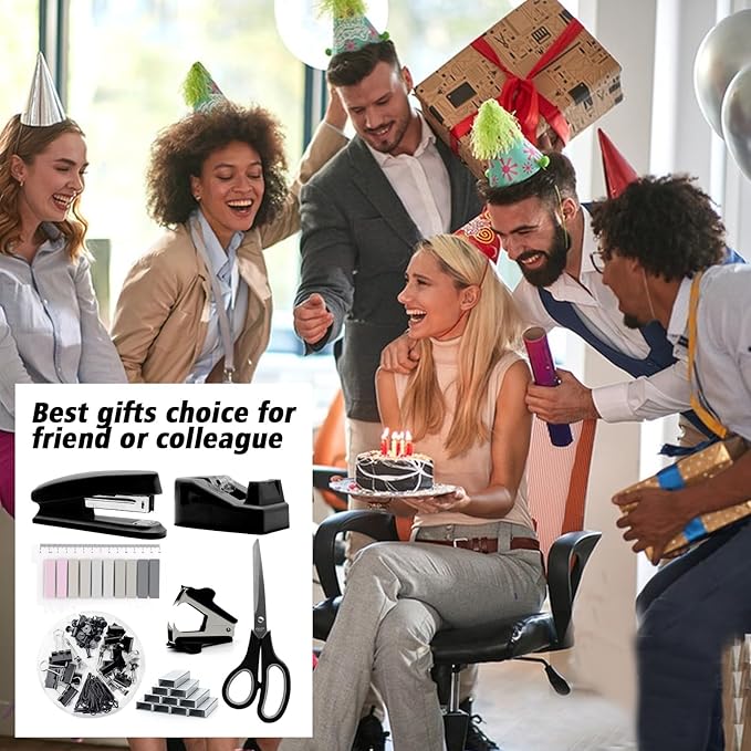 sportsvoutdoors Black Desk Accessories, Black Office Supplies, Stapler and Tape Dispenser Set, Black Desk Accessory Kit, Gift for Students, Women, Coworkers, Boss Lady, Office Clerks