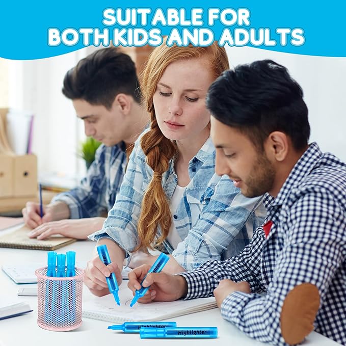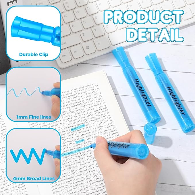 - Convenient Chisel Tip Design: our blue highlighters come with a good chisel tip offering broad highlighting or fine underlining and allow you for creating thick and thin lines; Secure fitting caps can protect the tips when not in use