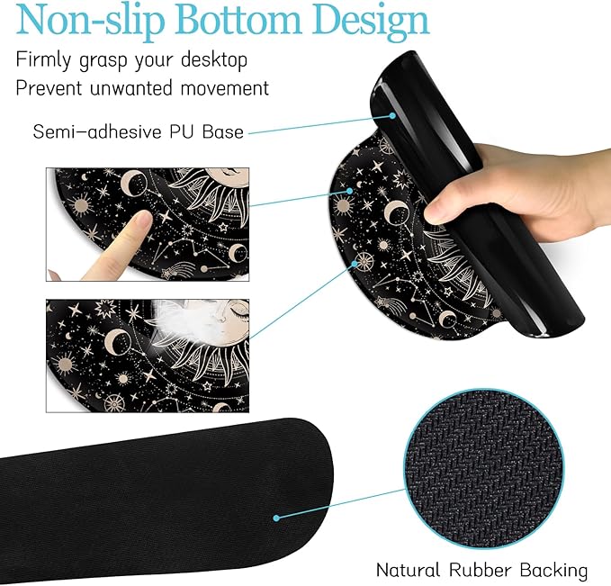 - Novel design: Large mouse pad has clear patterns and unique styles. The cute art is for boho sun and moon. They are an excellent office desk accessory and a good companion for learning, working and playing games, which adds more personality to your office