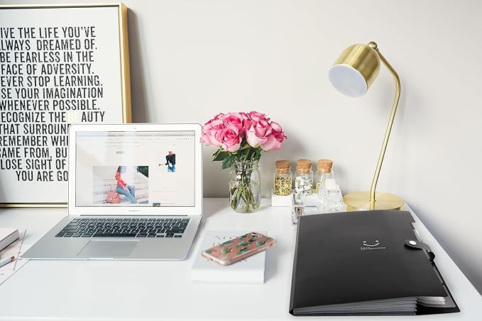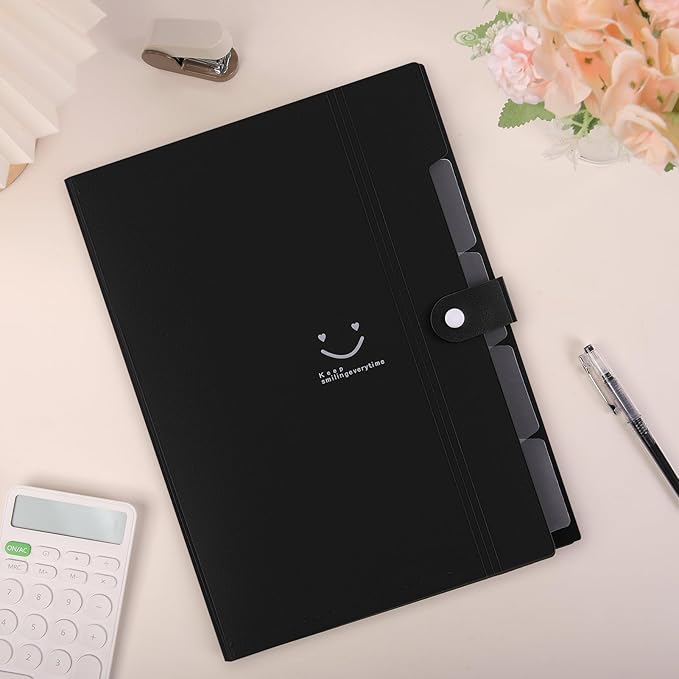 SKYDUE File Folder with 8 Labels, 5 Pockets Accordion Paper Organizer for School and Office,A4 Letter Size,Black