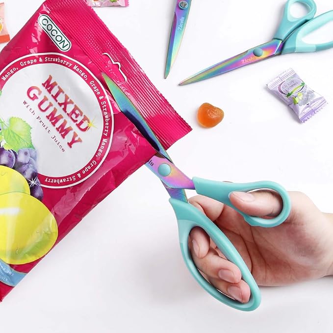 - 3 pair 8.5" Cute Rainbow Scissors in retail packaging, Different Colored Scissors Can be Used in Different Places