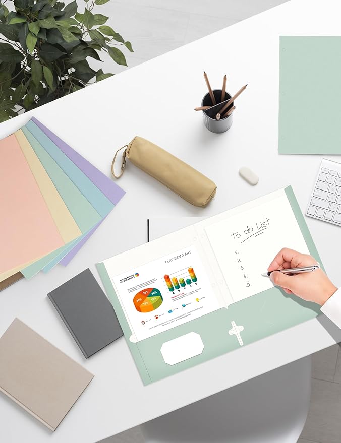 - Package Includes: 50-Pack of pocket folders bulk in a variety of colors. Made of durable, textured paper that will meet those specific color requirements on your back-to-school list. The sleek, modern design adds a touch of sophistication to your workspace, making these folders a statement piece that demands attention.