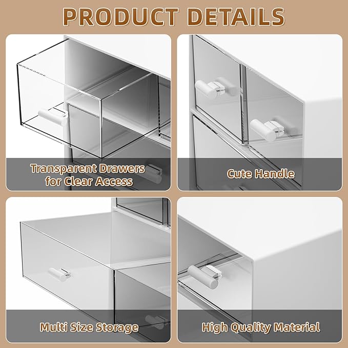 - 【Waterproof and Easy Access】 Desktop organizer with drawers is waterproof and very suitable for use in the bathroom, where small items such as combs and soaps can be neatly placed. The transparent drawer design makes it easy to identify and access different items.