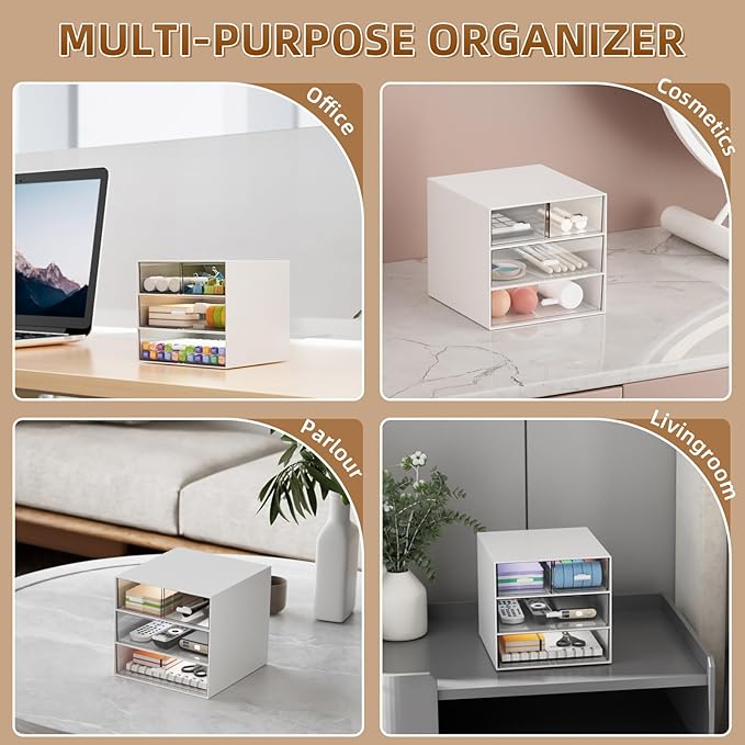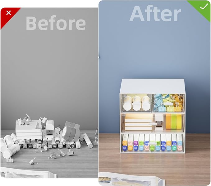 - 【Multi-functional Desk Drawer Organizer】 Marbrasse Desk drawer organizer has 3 layers and 4 drawers, providing enough space to store daily necessities. The organizer drawers storage can be placed on any desk or shelf, maximizing space and keeping your items organized.