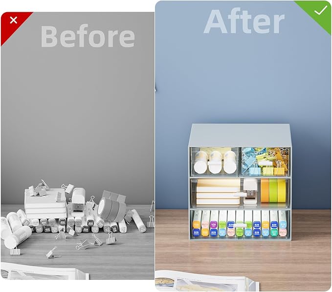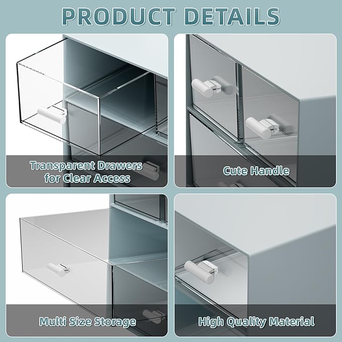- 【Waterproof and Easy Access】 Desktop organizer with drawers is waterproof and very suitable for use in the bathroom, where small items such as combs and soaps can be neatly placed. The transparent drawer design makes it easy to identify and access different items.