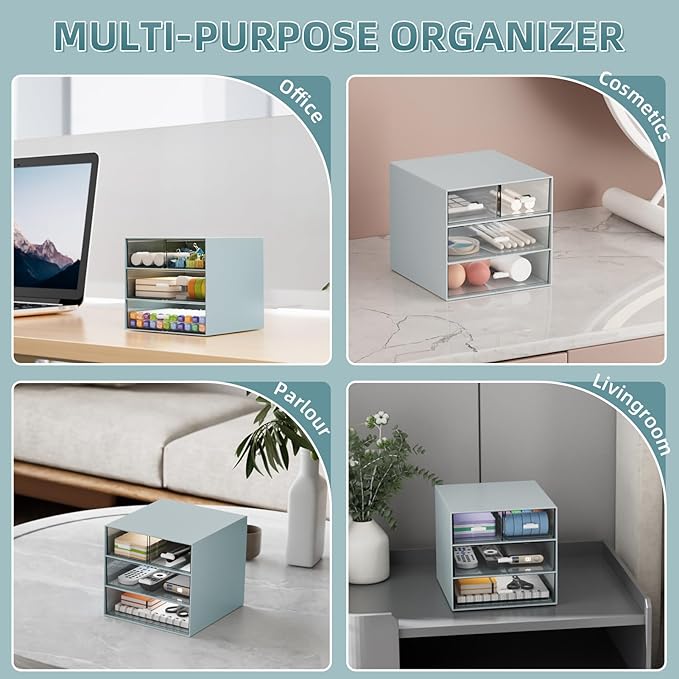 - 【Multi-functional Desk Drawer Organizer】 Marbrasse Desk drawer organizer has 3 layers and 4 drawers, providing enough space to store daily necessities. The organizer drawers storage can be placed on any desk or shelf, maximizing space and keeping your items organized.