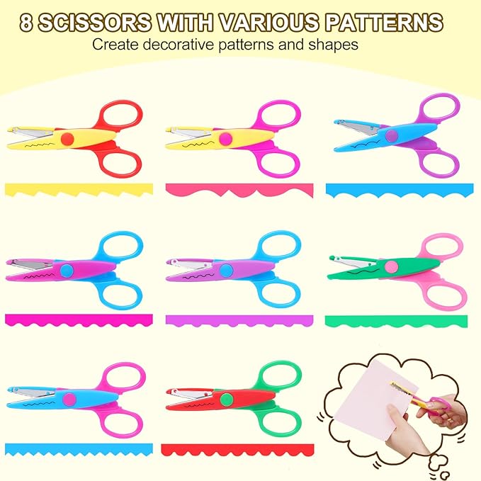 - 8 Piece Craft Scissors : Arts & Crafts Decorative Scissors For Paper Set Provides Endless Design Possibilities for Your Albums, Greeting Cards, Memory Books, Gift Tags & Other Paper & Photo Crafts,8 Creative Craft Supplies Scissors with Unique Pattern