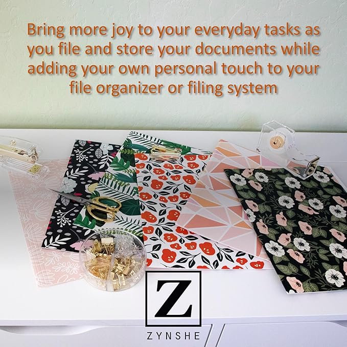 - BEAUTIFULLY DESIGNED: Looking for classy, cute file folders? Look no further! Made with gorgeous original artwork, each file folder in this set of 12 has a different but coordinating pattern. Bring color and charm to your workspace with these decorative folders.