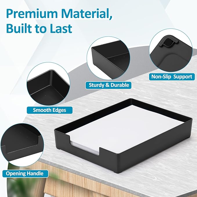 - Heavy Duty Plastic Letter Tray: Made of thickened ABS material, the paper organizer tray is sturdy and durable with excellent load-bearing capacity, which definitely will last a long time use for you. Large Size: 12.99" L x 9.44" W x 1.96" H, suitable for A4-sized letter papers, files, folders, or books.