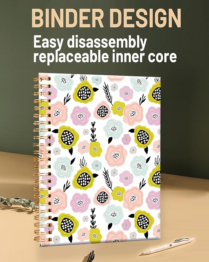 Spiral Journal Notebook for Women,A5 College Ruled Notebooks 6"x 8.4", 120 Pages Lined Journal with Premium Thick Paper,Perfect for School Office Home Gifts(colorful flower plants)