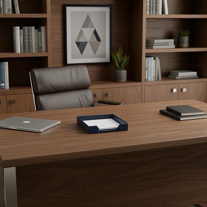 Dacasso Navy Blue Bonded Leather Luxury Letter Tray Holder & Paper Organizer for Desk - Executive Desk Decor & Office Organization Essential