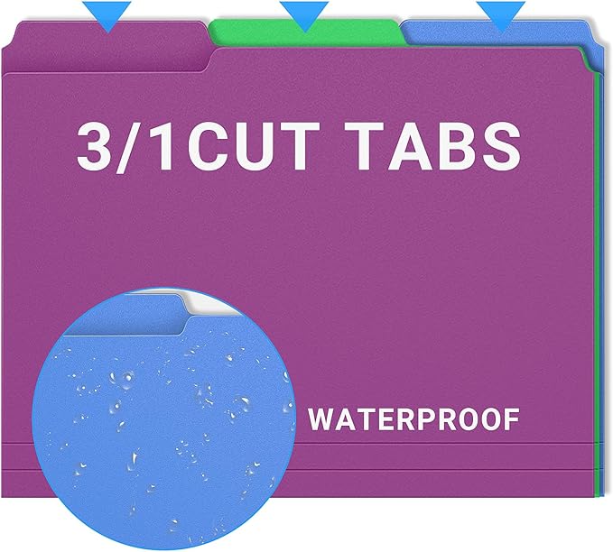 24 Pack Colored Plastic Manila File Folder,3 Tab Multi-Color Heavy Duty Files Folder with 1/3-Cut Tabs,Letter Size,Assorted Colors Filing Folder,Cabinet Office Supplies Folders for Documents, 8.5 x 11