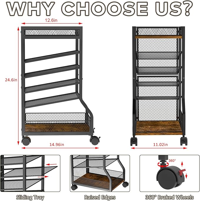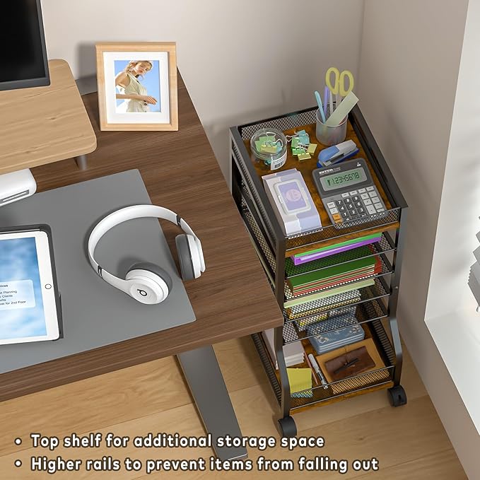 - 【Fits Under Desk】24.6 inches tall (with wheels) fits under most desks, so you can easily move this file cart under or beside your desk to keep files within reach. 6-Tiers design brings more than enough storage space, each tier of file trays have the right space between them for you to store your files, and the back of the shelf is supported by mesh to prevent files from falling.