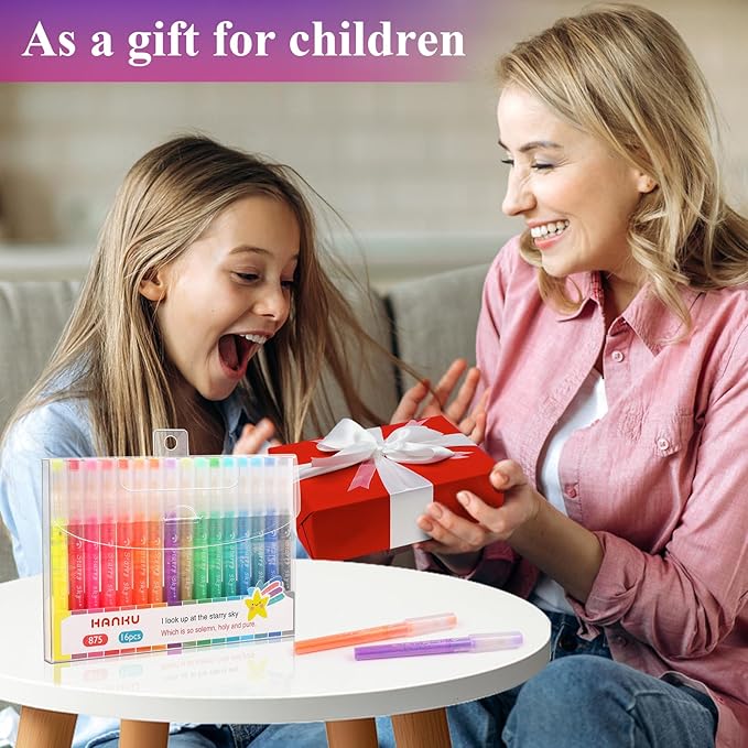 - GLITTER INK & BARREL: HANKU sparkle highlighters use special pastel colored ink with silver glitter which gives the drawings, journal planners notebook, DIY cards a shimmering and sparkly effect. The pen body also glows beautifully, shining like the starry sky.
