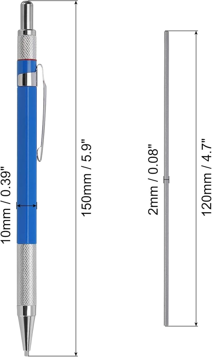- Color: Blue; Material: Plastic, Copper; Overall Size: 150 x 10mm (L*W); Refills Diameter: 2mm / 0.08"; Packing List: 1 x Mechanical Pencil, 12 x Multicolor Refills.