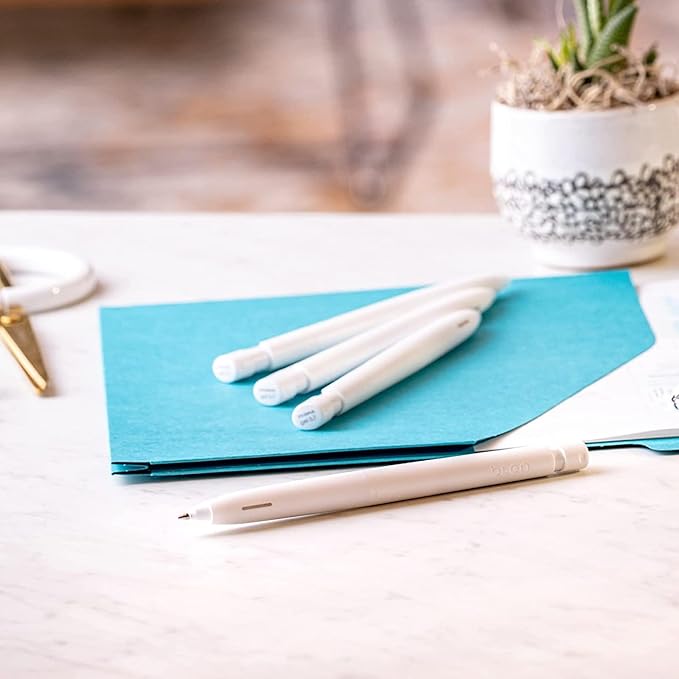 - Clean white barrel with low center of gravity and sleek plunger blend form and function, providing a relaxed, stress-free writing experience