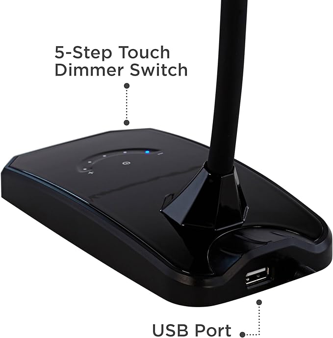 - Each has a built-in 5V-1000mA USB port in the base. 1 amp. Flexible metal gooseneck arms can rotate 360-degrees. Each comes with 6-foot long cord.
