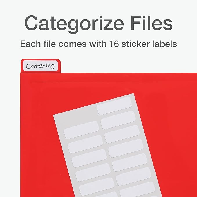 - Folders store upright in your clear file organizer; see your whole semester or project at a glance; with stick-on file folder labels to easily label your file tabs; slim & compact so you travel light