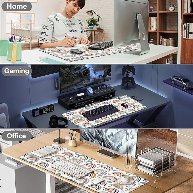 - ♥[Extended Size]The size of this mouse pad is 31.5"x15.7".It is large enough to accommodate your keyboard and mouse perfectly.What's more,you also can put your cups or other stuffs on it.The Large size ensures free movements of your mouse without any interruptions. Therefore,you don't have to continually adjust the mouse mat like the traditional one.It also can protect your desktop from any scratches or stainess.