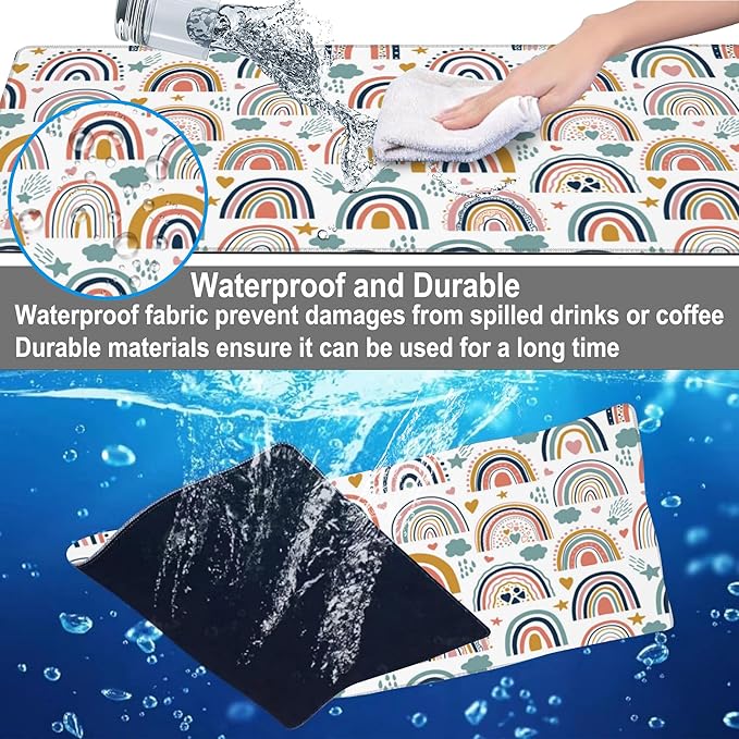 Mouse Pad, Large Boho Rainbow Desk Mat, Extended Non-Slip Gaming Keyboard Mousepad Desk Pad, Thick Stitched Edges Waterproof Mouse Mat 31.5"x15.7" (Scandi Rainbow and Stars Clouds)