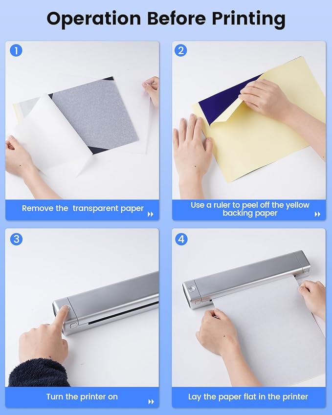 - Optimal Performance with Certified Consumables: The Phomemo M08F thermal printer requires a specific type of thermal paper to achieve its best performance. The thermal paper used by the M08F mini mobile printer differs from regular paper. However, if you need to print tattoos, regular tattoo transfer paper will be sufficient
