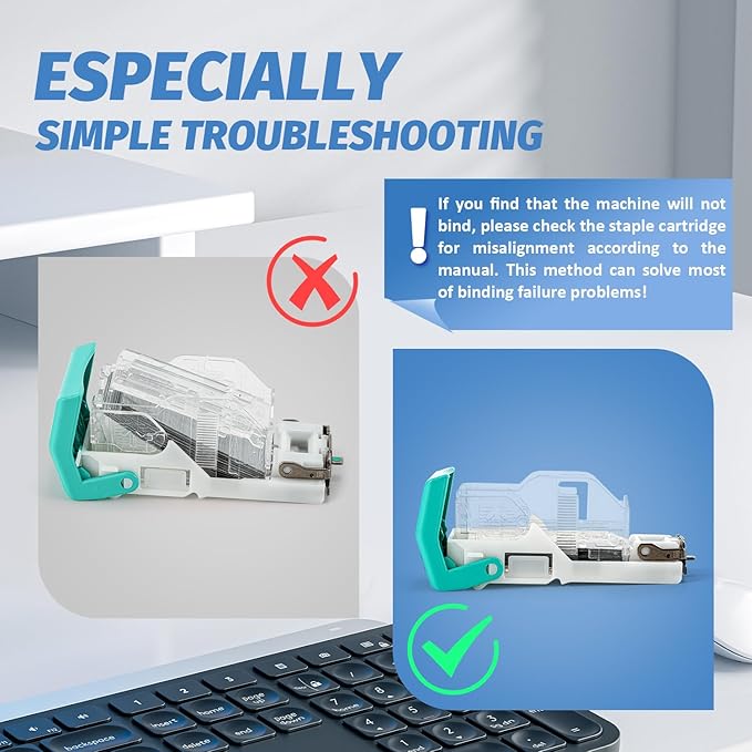 - Jam Free Electric Binding:Our heavy-duty electric stapler uses high-quality metal and springs to effectively prevent jams. Usually can effectively bind up to 65 sheets of 70g A4 paper or 75 sheets of 60g A4 paper.