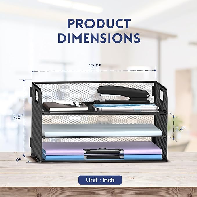 - [3 Tier Large Capacity] Upgraded SUPEASY desk organizer is 3 tier paper tray organizer. This paper organizer has 3 detachable trays which is perfect for holding letters, A4 paper, books, bills, magazines, mails, folders, notebooks and so on. The desk organizers can fully take advantage of your vertical space and keep your desktop clear and tidy.