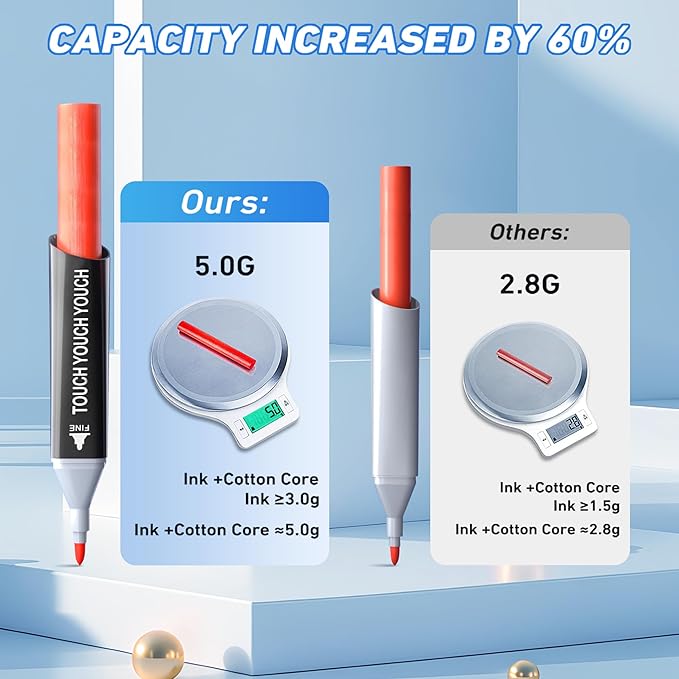 - 【TWO IN ONE】Dual-tip markers save money and space, helping beginners create professional results with these blendable markers. Immerse yourself in art while you can create fine details with the bullet tip (0.5mm-2mm) or create broad, sweeping strokes with the chisel tip (2mm-7mm). NOTE: Since they are alcohol based markers, like all other brands of alcohol markers, they will bleed into regular colored paper, except very thick paper, marker paper.