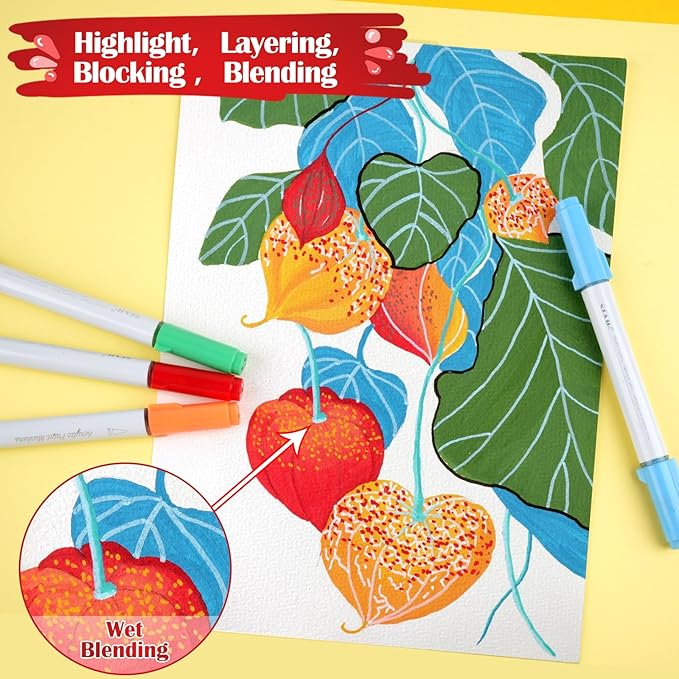 - High Coverage & Excellent Color Rendering: Whether on dark or black surfaces, bright-colored inks (such as blue and purple) can be clearly displayed, creating a striking contrast; on light surfaces, the colors remain vibrant and vivid, without appearing dull or blurry. Mistakes are easily fixed—simply let the ink dry and cover with the same marker. User-friendly acrylic markers are perfect for beginners, kids, and creative projects.