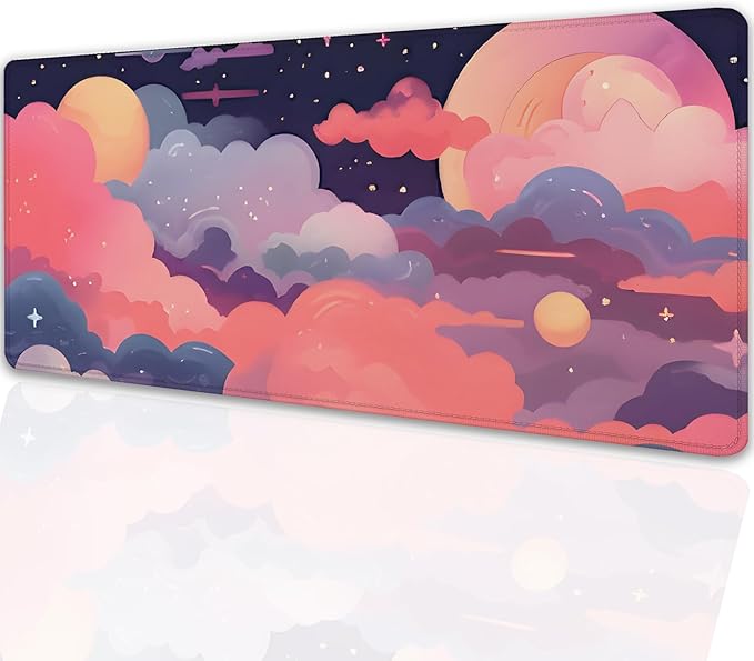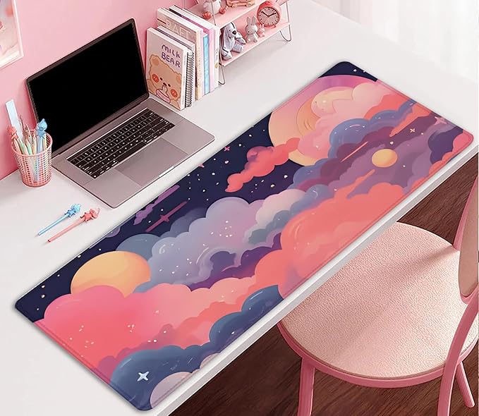 Red Cloud Desk Mat Cute Mouse Pad,Kawaii Anime Large Mousepad with Non-Slip Stitched Edges,Keyboard Mouse Mat Desk Pad for Women Girl Work Office Home(27.5X11.8 in)