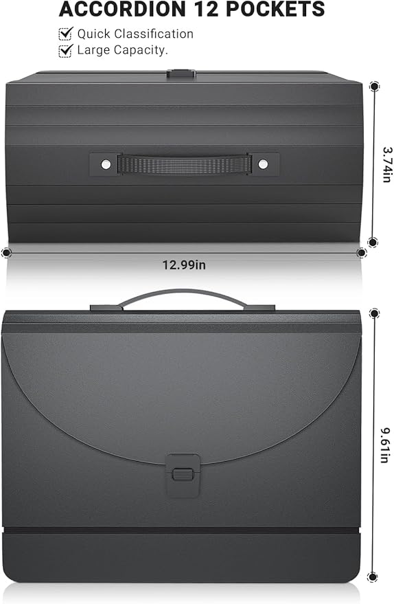 - ✔【LARGE CAPACTIY】Perfect filing cabinet,total 13 expandable pockets,1.3 inches accordion each pocket,fit both A4 paper and 8.5x11 letter size, Filing box can accommodate approximately over 1500 sheets when used uncovered and unfolded on desk or cabinet.