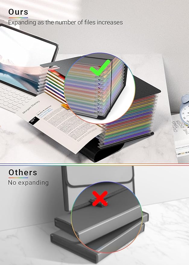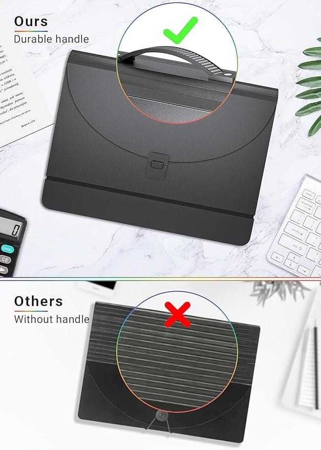 - ✔【TOP-GRADE MATERIALS【TOP-GRADE MATERIALS】 Expandable file folder are made by high quality polypropylene and polyester, 20% and more thicker than other file folders, it can stand on the desktop independently, no easy to be broken and deformed. 100% Waterproof, Non toxic, Non Odor, Anti-wear, tear and Moisture resistant.